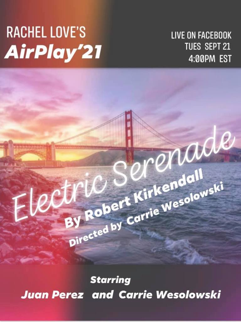 Here’s the YouTube link to the AirPlay ‘22 webcast of the first scene of my two act stage play Electric Serenade. Big thanks to Carrie Wesolowski and Juan Perez for bringing the characters Joanna and Mark to life, and Coni Koepfinger and Rachel Love for their fine web series which gives a lot of playwrights a chance to reach a wider audience. May this be another beginning!