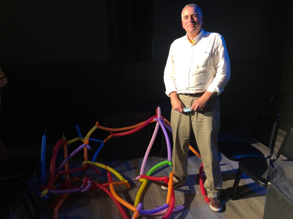 Last but not least came my play. Since I wasn’t present at the rehearsals and only knew the actors by name I had no idea what to expect. The lights lit back up and the first two actors came out on stage and spoke dialogue that hereto fore I only had only heard in my head. I hadn’t read the script in some time so I didn’t remember all of it but it sounded like they stayed true to my script. Then came the other three actors and now I was seeing my words brought to life. I was pleased with all five actors and they brought new elements to the characters I didn’t know were there. This is always the case but since I didn’t see it until the premier it was an extra surprise. They even added an extra bit with a beach ball that brought an extra laugh. I was very happy with the final result!