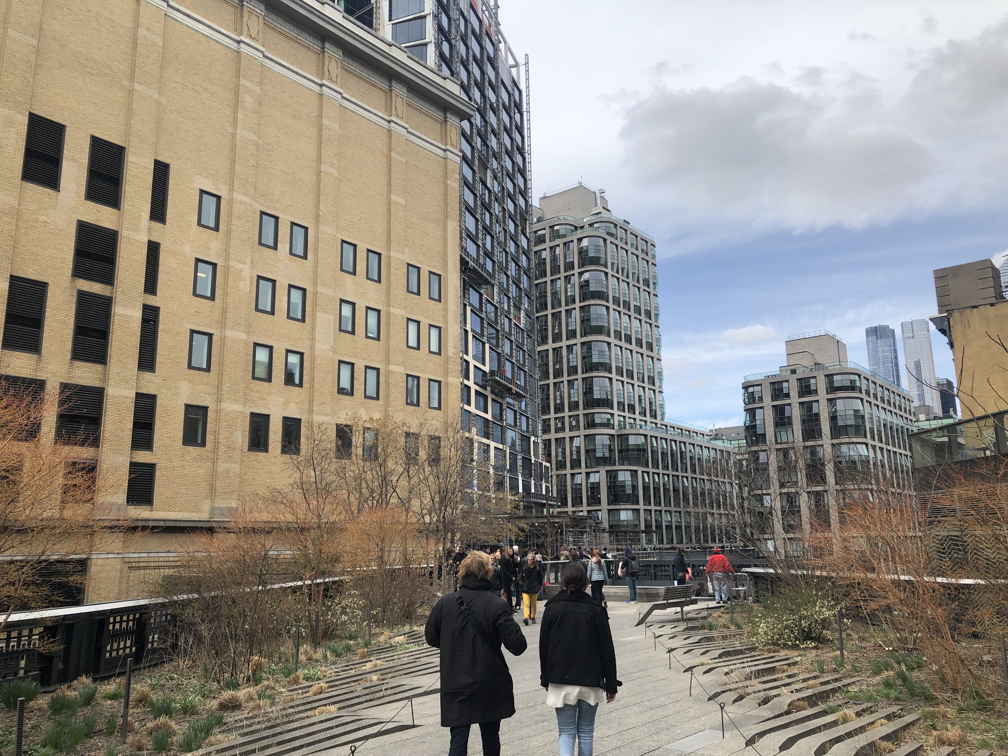 After I ate I went out to meet Carrie at the southwest corner of 7th Ave and 33rd St. She said she wanted to show me the High Line, and as we walked toward the west side she described the High Line but I didn’t quite understand it. Just past 10th Ave we came to a wide U shaped staircase and climbed up to a long platform that crossed over 10th and I finally got an idea of Carrie was talking about.