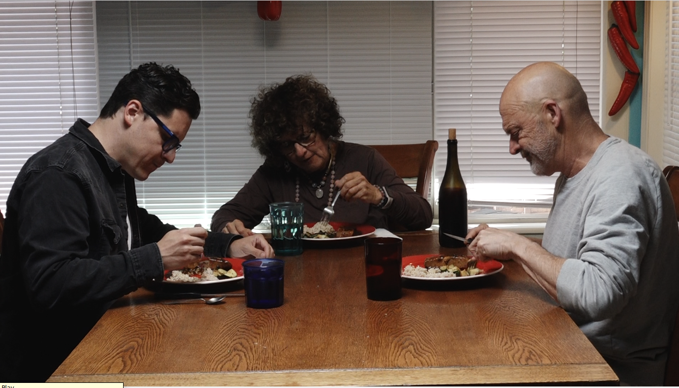 Day of the shoot my older brother Steve generously drove me and the rented camera up to the East Bay. The actors and I agreed to meet at Ain’t Normal, a cafe on College Ave in Oakland’s Rockridge neighborhood. We were all there by about noon and the cafe was just across the street from Rockridge BART Station, perfect because I wanted to get an establishment shot of one of the BART trains pulling into the station. We walked around the station looking for the perfect spot and Steve found one on a staircase leading up to the station. Then Miguel Wacher, one of the actors who also has tech experience, helped me center the camera through the stairway grate so I could get the Salesforce Tower centered in the background.
