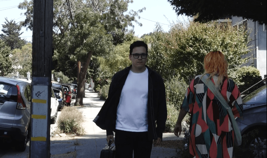 Getting the BART shots was the easy part. Then came time to shoot the scene with the two main actors. Because I didn’t have a specific location in mind we had to look for one. So the five of us walked north up College Ave looking down the residential cross streets for the right spot. We finally found one on one of the side streets that was far enough from College Ave so there wasn’t traffic noise, and it was a section of sidewalk where there were enough trees to provide shade.